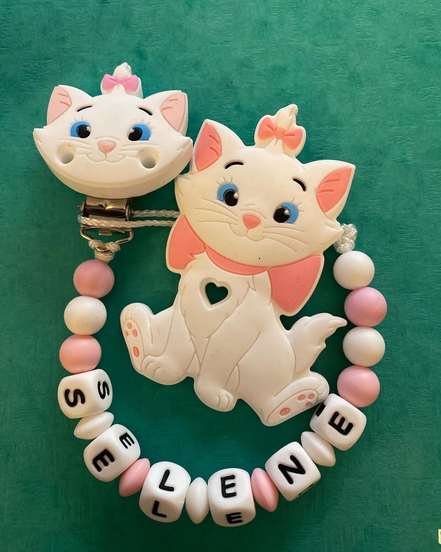 attache tetine et anneau de dentition personnalisé en silicone Marie Aristochats