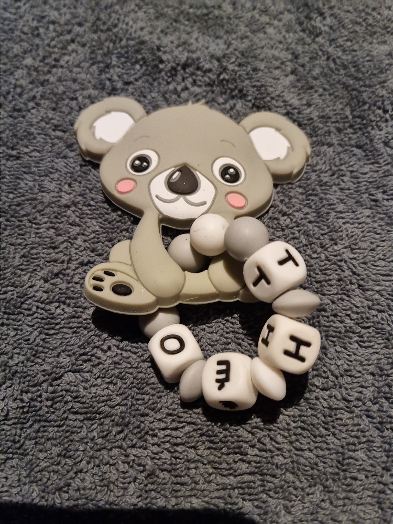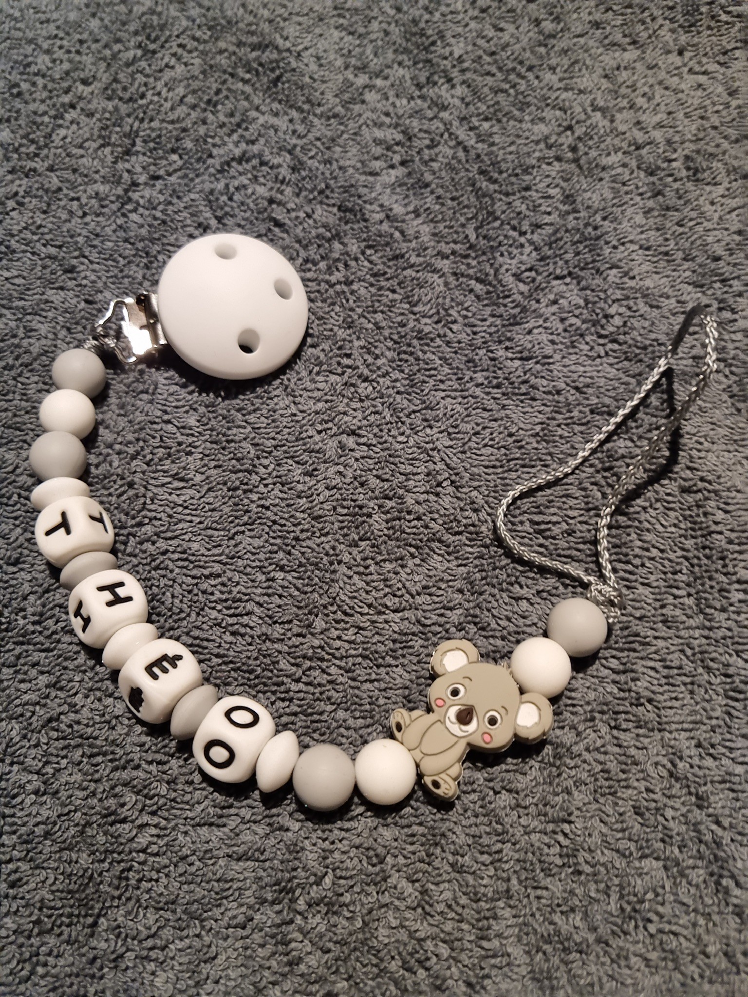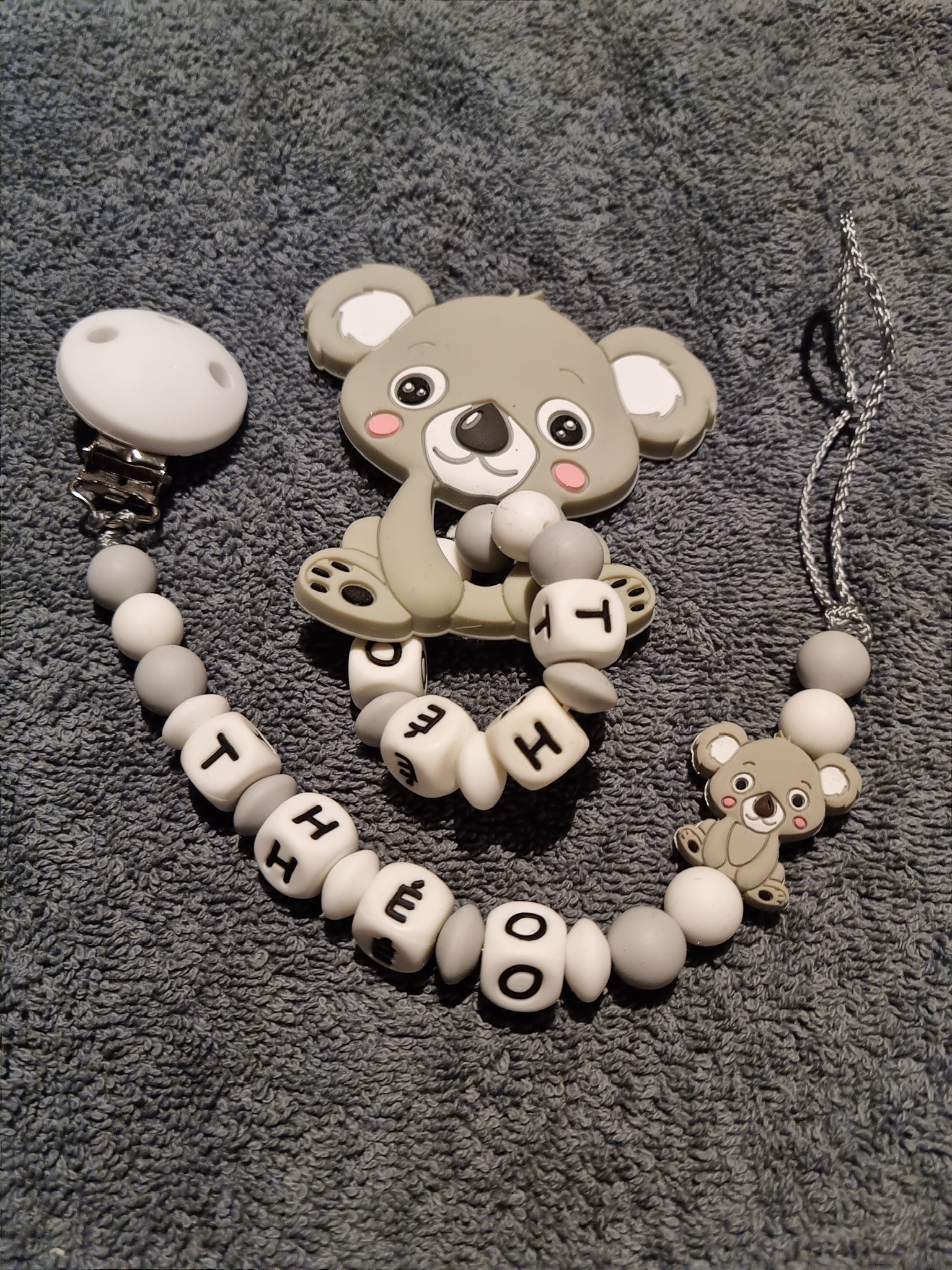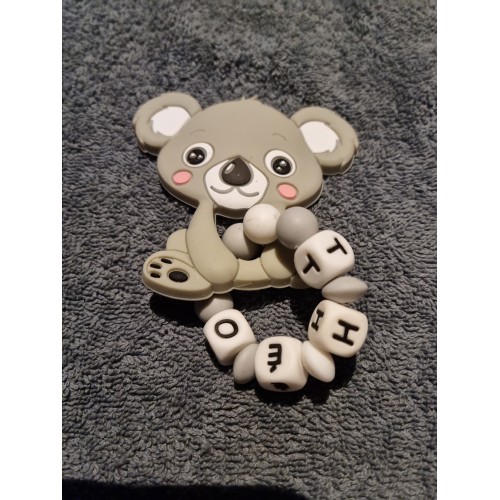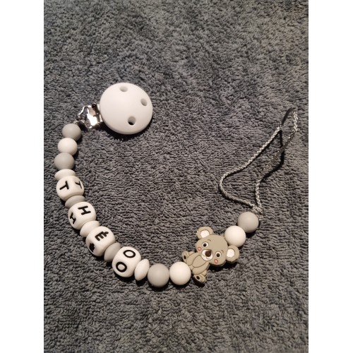 Attache tétine et anneau de dentition personnalisé en silicone koala gris