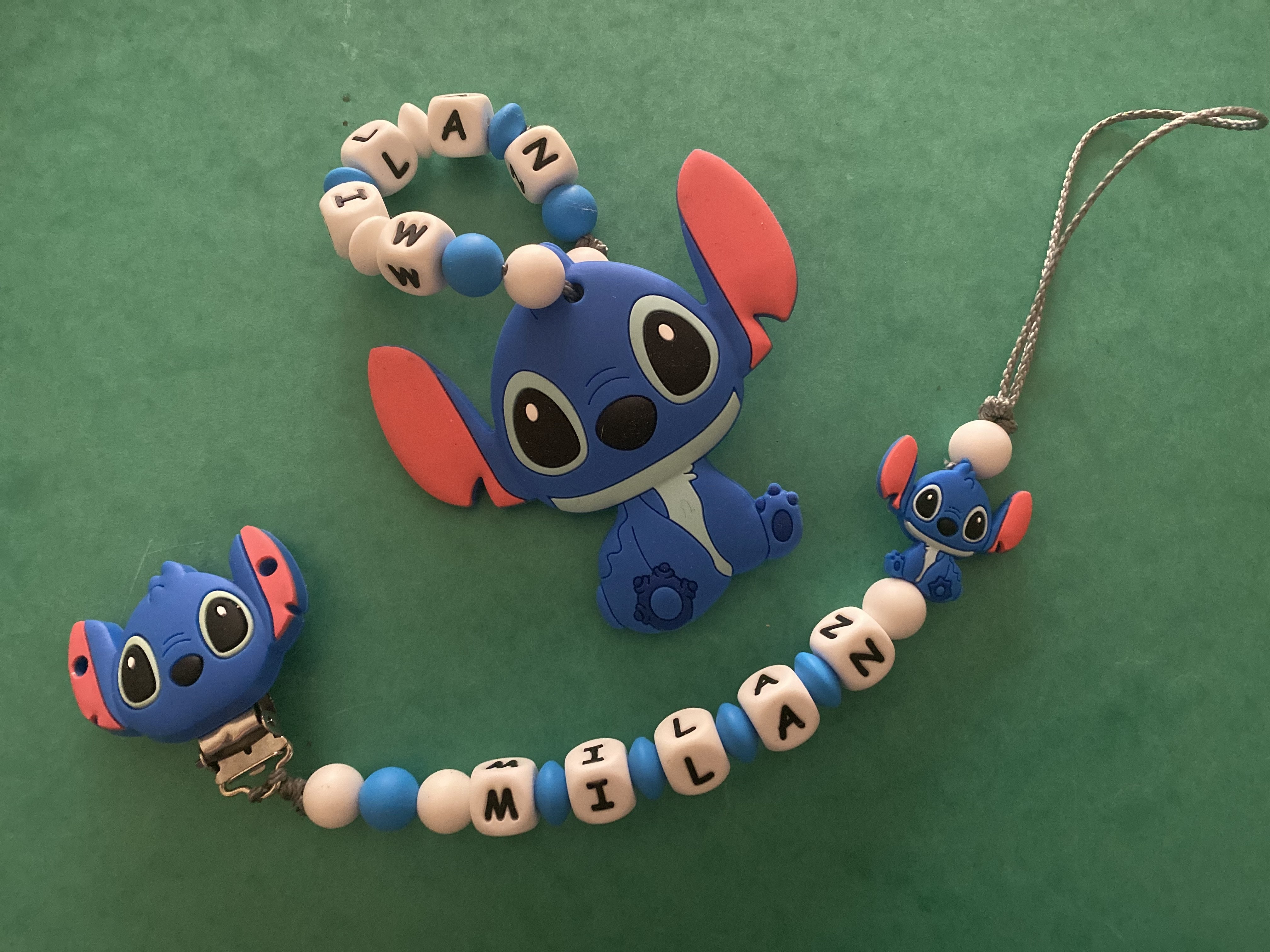 Attache tétine et anneau de dentition personnalisé en silicone stich