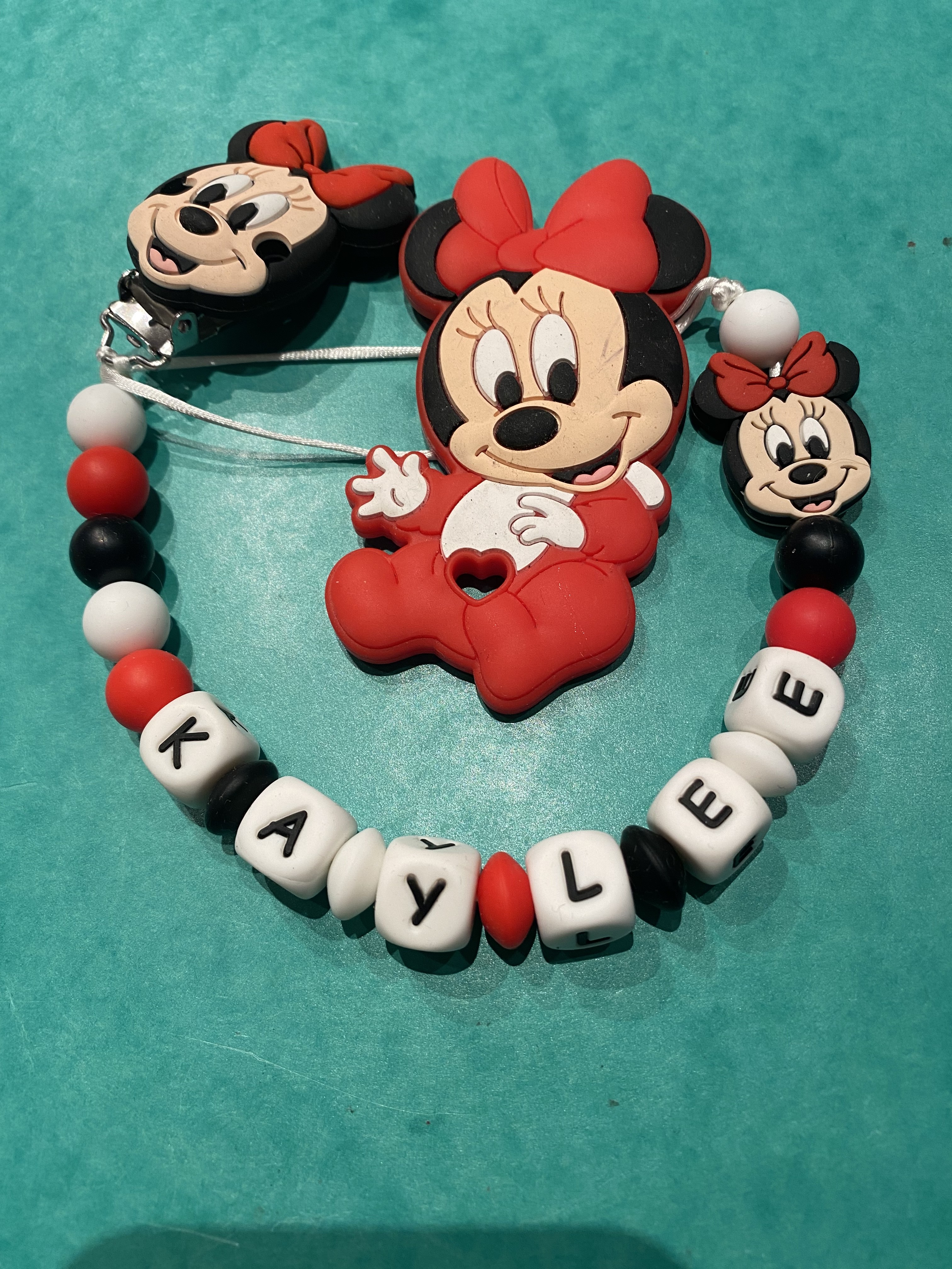 Attache tétine et anneau de dentition minnie rouge