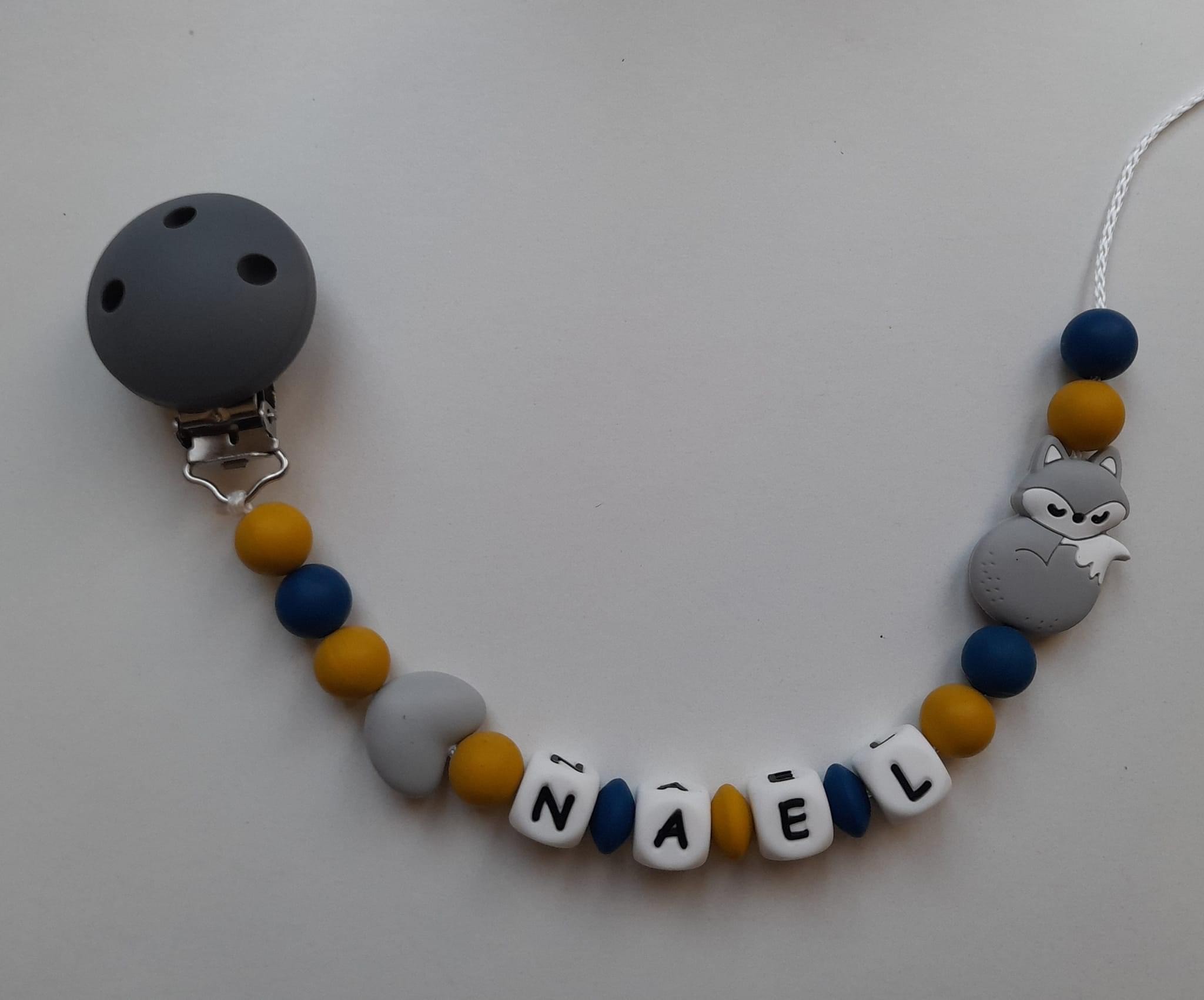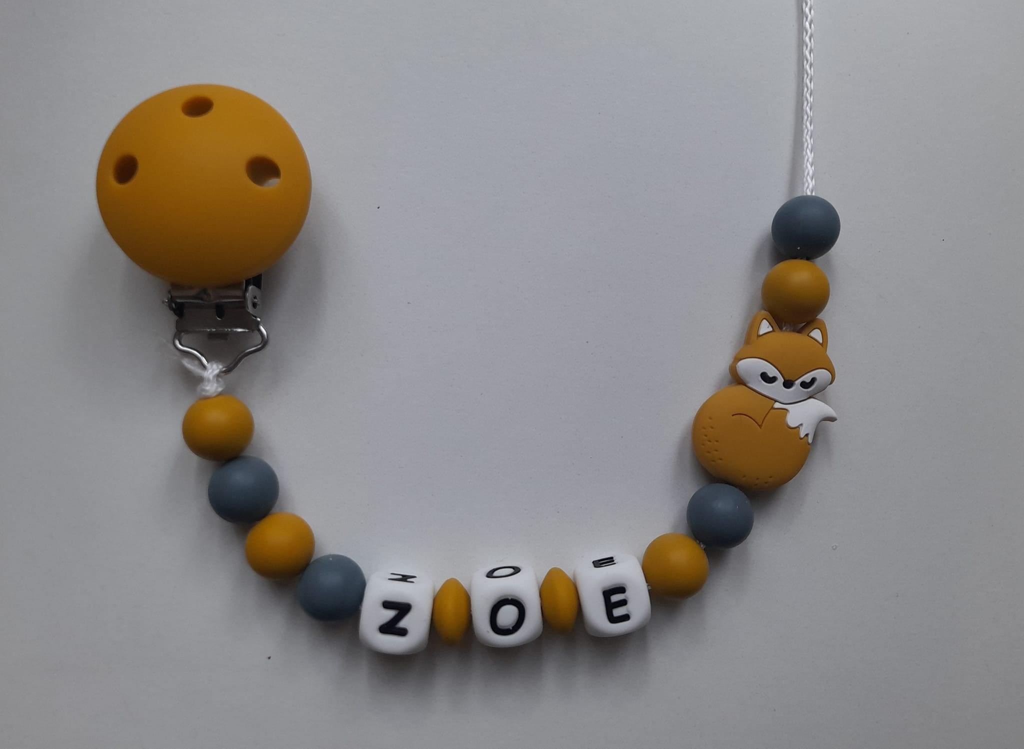 Attache tétine et anneau de dentition renard personnalisé